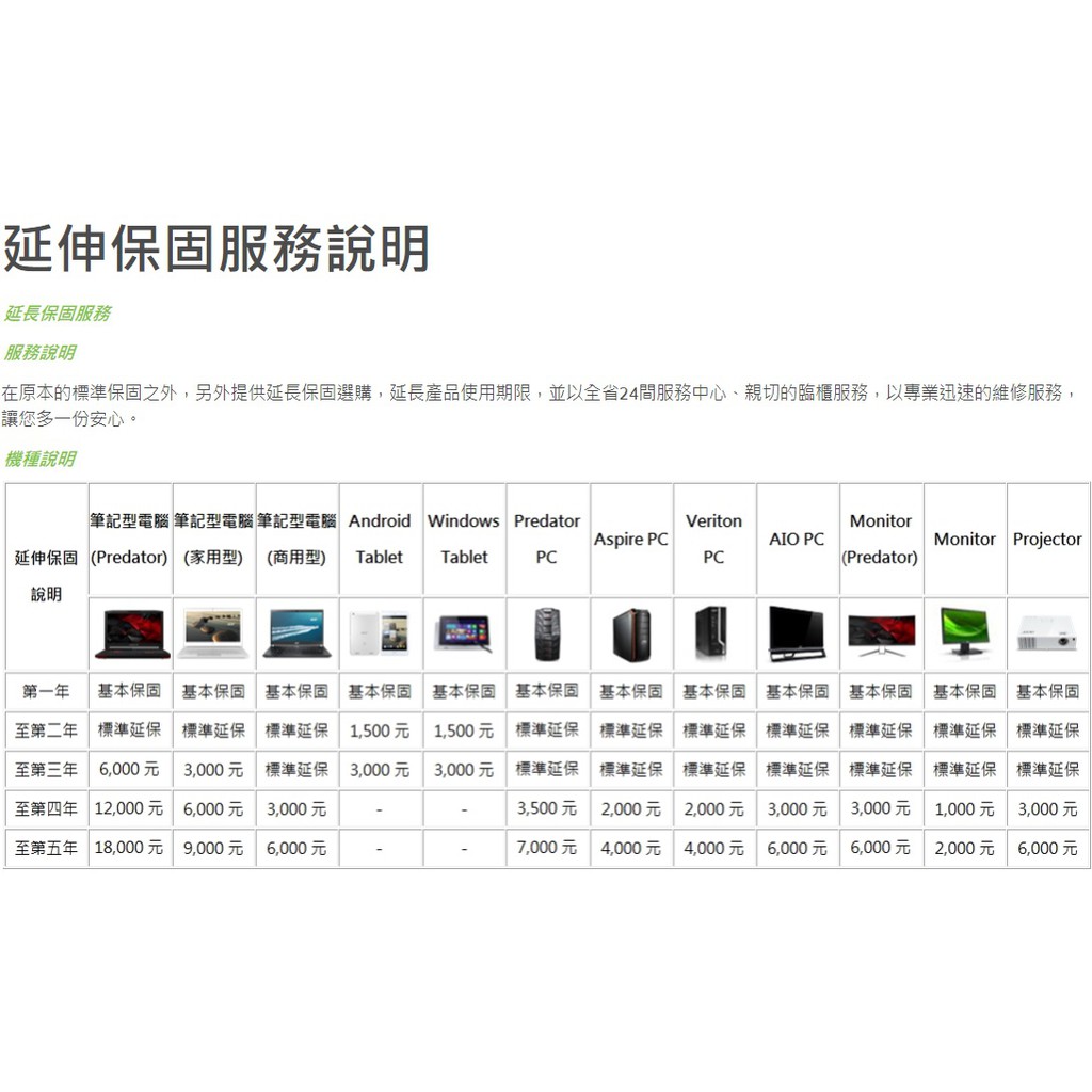 Acer 宏碁筆記型電腦一年延伸保固卡不適用predator 系列 蝦皮購物